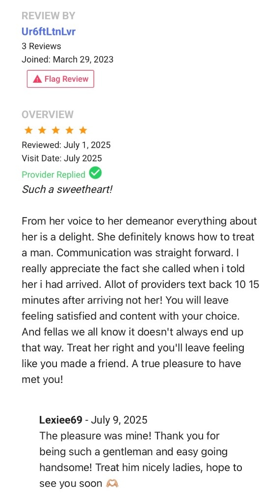 💟Incalls💟FaceTime fun💟Outcalls 🤞🏼100% REAL & RECENT pics 💖I have the remedy for every man’s sweet tooth✨ 💝Bubbly personality💘Easy going nature 🍭Your new sweet addiction🍭 🤞🏼Safety is my #⃣1⃣ priority! ✅Well reviewed✅Highly favored (I do not answer private/blocked calls) 👙Natural body w/bouncy D cups 🌟Check out my 5 ⭐ reviews 👻Lexieluv07